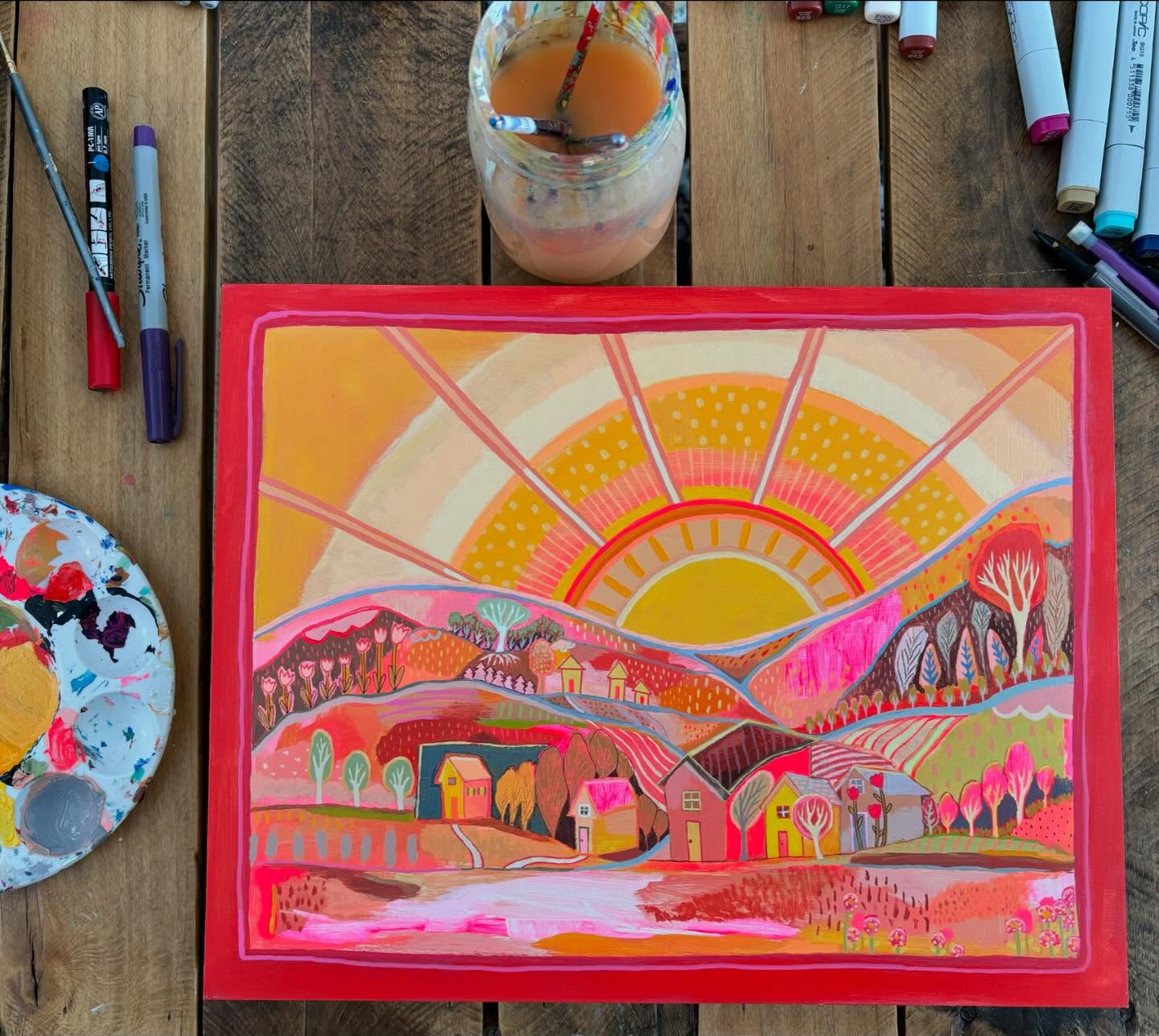 I used to be terrified of a blank white canvas. Who am I kidding? I still am! This is how the Enjoyablock originally came to being, way back in 2009, while working in my parents basement. I didn’t have a lot of extra money to spend on new art supplies, but I did have scraps of 2×4″ wood, and there was something much less anxiety provoking about working on a piece of dinged-up wood. I used what I had available- paper from an old dictionary I found, postage stamps from recycled envelopes, basically anything I could collage with that was free. The pressure went away and I got to work creating. I spent so many hours in that basement developing a style of my own, learning mixed media, and eventually starting what has become my business, PS Enjoy Your Life. It started as a reminder to me when I struggled to figure out what I wanted to do with my life. That I should pay attention to what truly lights me up, and do that. The rest will fall into place. And it has. With a whole lot of hard work, of course!