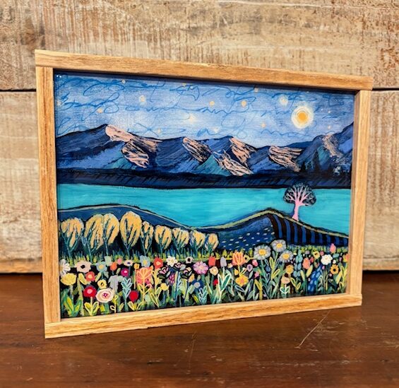 Reclaimed wood framed, 5×7″ resined block.