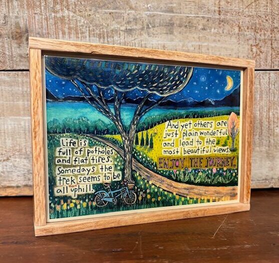 Reclaimed wood framed, 5×7″ resined block.