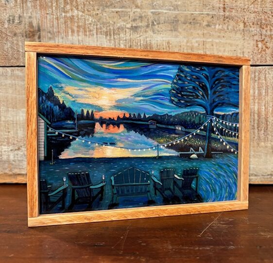 Reclaimed wood framed, 5×7″ resined block.