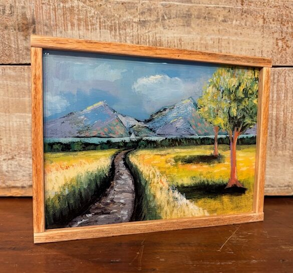 Reclaimed wood framed, 5×7″ resined block.