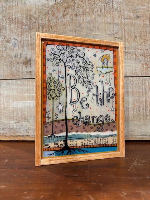 Reclaimed wood framed, 5×7″ resined block.